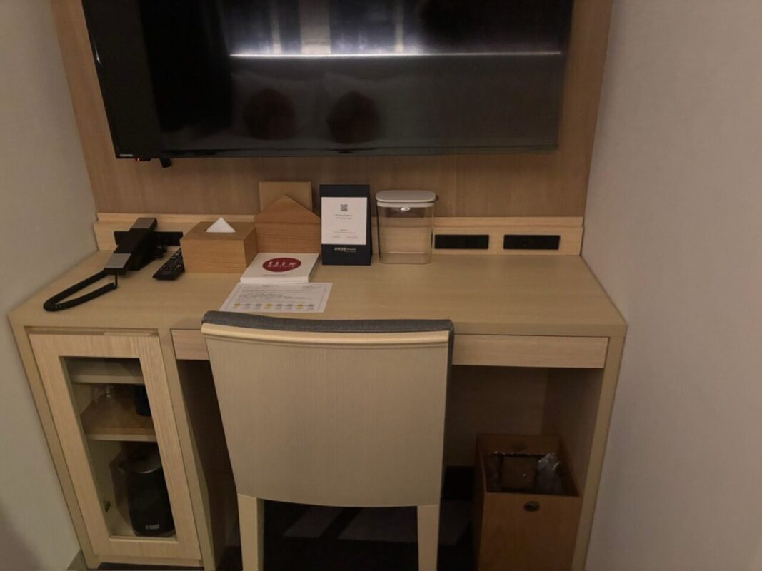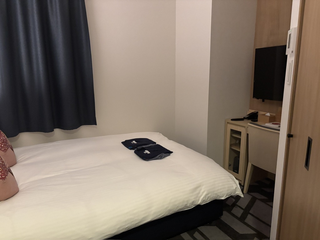 続いては、お部屋の紹介をしていきます。今回、宿泊したお部屋は「ダブルルーム」。お部屋はコンパクトな作りではありますが、デスクもありビジネス利用でも問題なく快適に過ごすことができます。