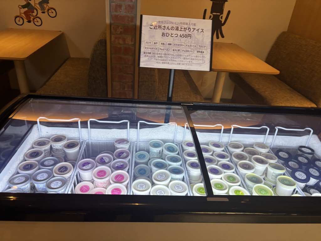 さらに、アイスクリームやお菓子も販売しているので、ちょっとお腹が空いても安心。お風呂上がりに食べるアイスクリームってクールダウンできるし最高ですよね♪
