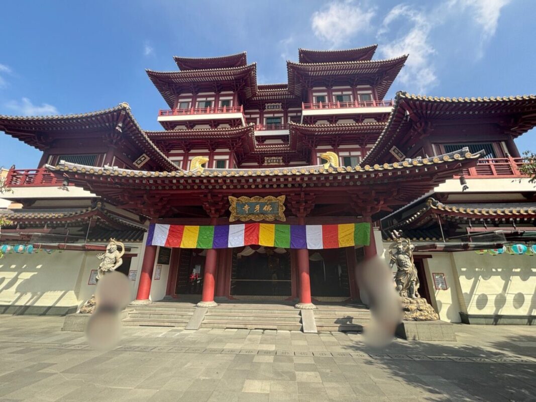 チャイナタウンの中心にある建物が、壮大な寺院Buddha Tooth Relic Temple。中国風の豪華な建築が特徴で、赤と金を基調にした装飾がとても美しい寺院です。