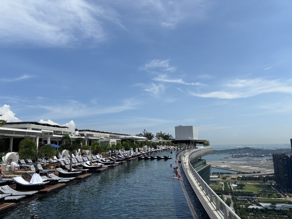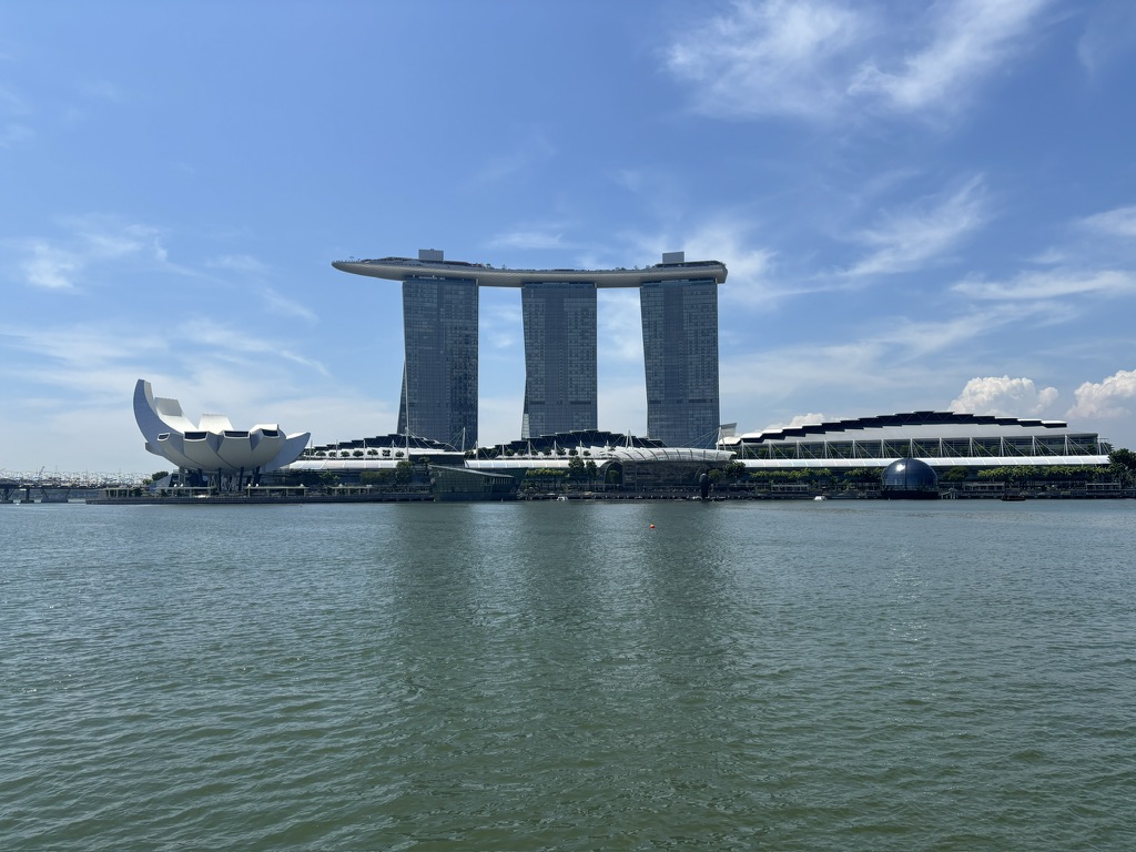 さらに、マーライオンのすぐ目の前にはマリーナベイ・サンズ。船の形をした屋上が印象的な建物で、マーライオンと一緒に写真を撮るのが定番の構図です。マーライオンの周りは世界各国からの観光客でいっぱいです。