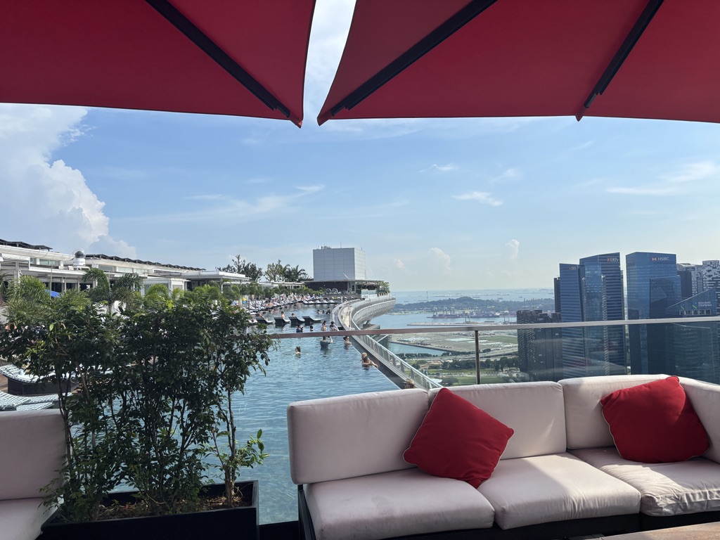気になるお値段は、スカイバーへのアクセスチケットとドリンク1杯分が含まれて38 SGD。いまは円安が進行中なので約5,000円くらいの金額ですが、シンガポールの景色を一望したい方にはおすすめです♪上からガーデンズ・バイ・ザ・ベイを見ることもできます。